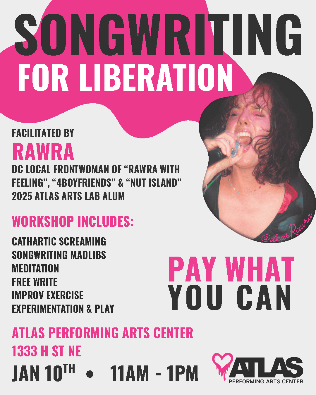 Be prepared for cathartic screaming to release tension, songwriting madlibs to spark creativity, and free-writing to get thoughts flowing. Write clearer, more honest lyrics together with other artists.